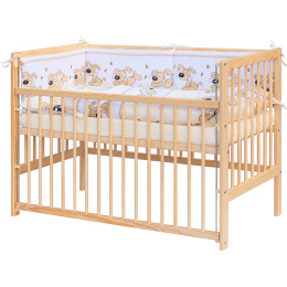 1. Dětská dřevěná postýlka 120 x 60 cm - přírodní, masiv borovice, stahovací bok, 6 poloh roštu