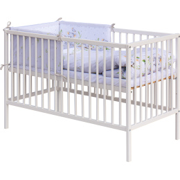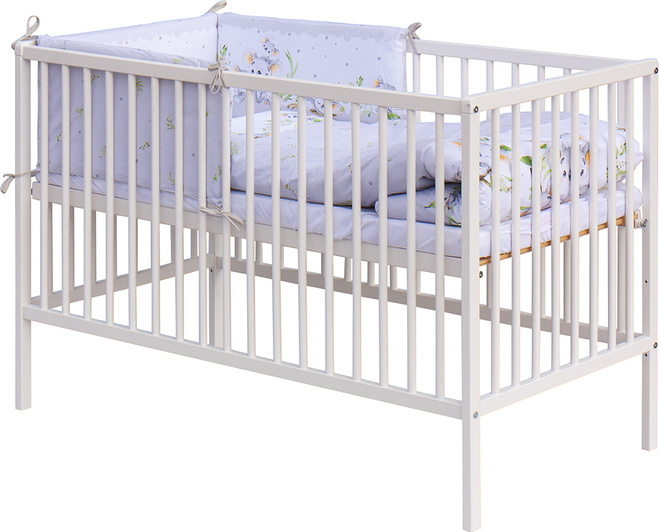 1. Dětská dřevěná postýlka 120x60 cm - bílá, masiv buk, 3 vyndavací příčky, 3 polohy roštu, nohy jsou předvrtané pro možné nasazení koleček