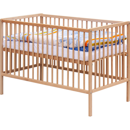 1. Dětská dřevěná postýlka 120 x 60 cm - přírodní, masiv borovice, 3 vyndavací příčky, 3 polohy roštu,