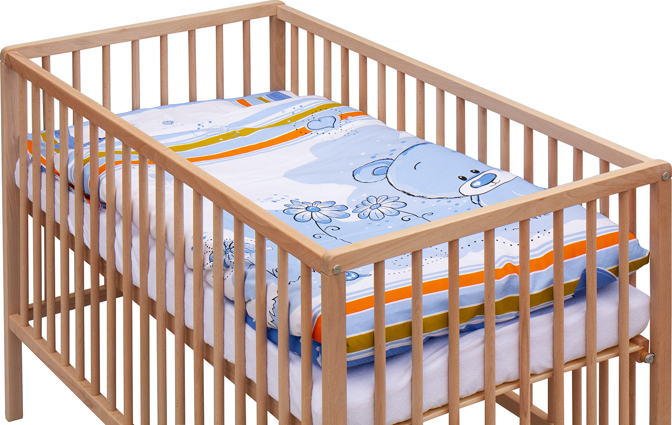 1. Dětská dřevěná postýlka 120 x 60 cm - přírodní, masiv borovice, 3 vyndavací příčky, 3 polohy roštu,