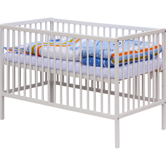 1. Dětská dřevěná postýlka 120x60 cm - bílá, masiv buk, 3 vyndavací příčky, 3 polohy roštu