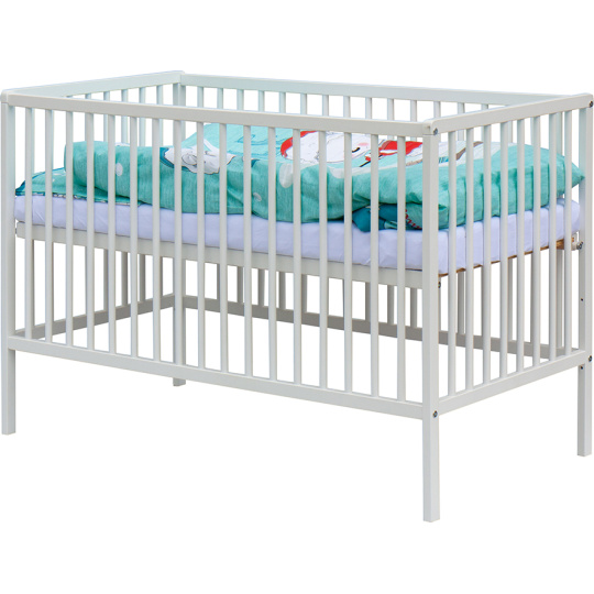 1. Dětská dřevěná postýlka 120x60 cm - bílá, masiv buk, 3 vyndavací příčky, 3 polohy roštu