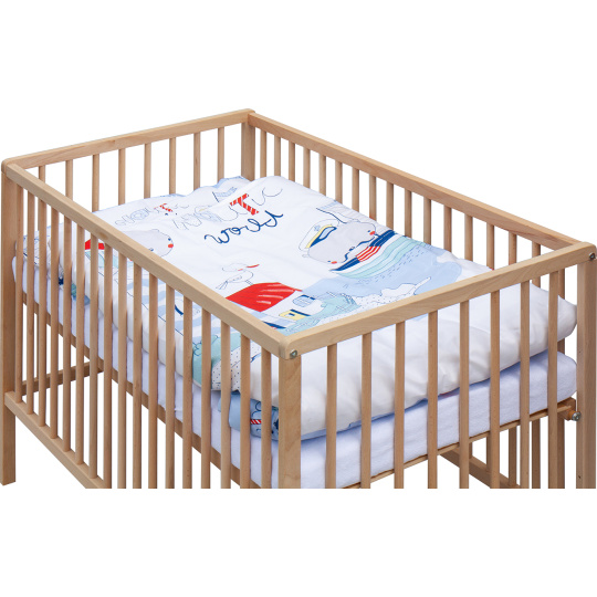 1. Dětská dřevěná postýlka 120 x 60 cm - přírodní, masiv borovice, 3 vyndavací příčky, 3 polohy roštu,