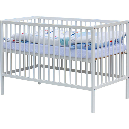 1. Dětská dřevěná postýlka 120x60 cm - bílá, masiv buk, 3 vyndavací příčky, 3 polohy roštu