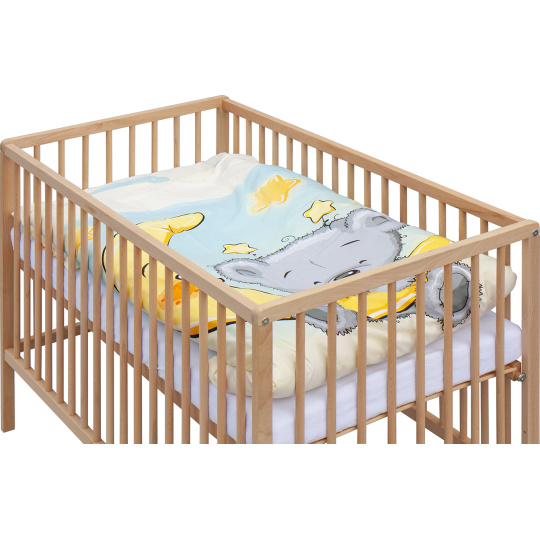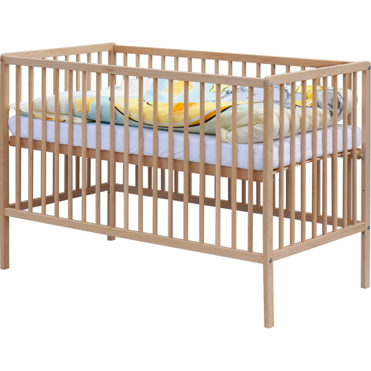 1. Dětská dřevěná postýlka 120 x 60 cm - přírodní, masiv borovice, 3 vyndavací příčky, 3 polohy roštu,