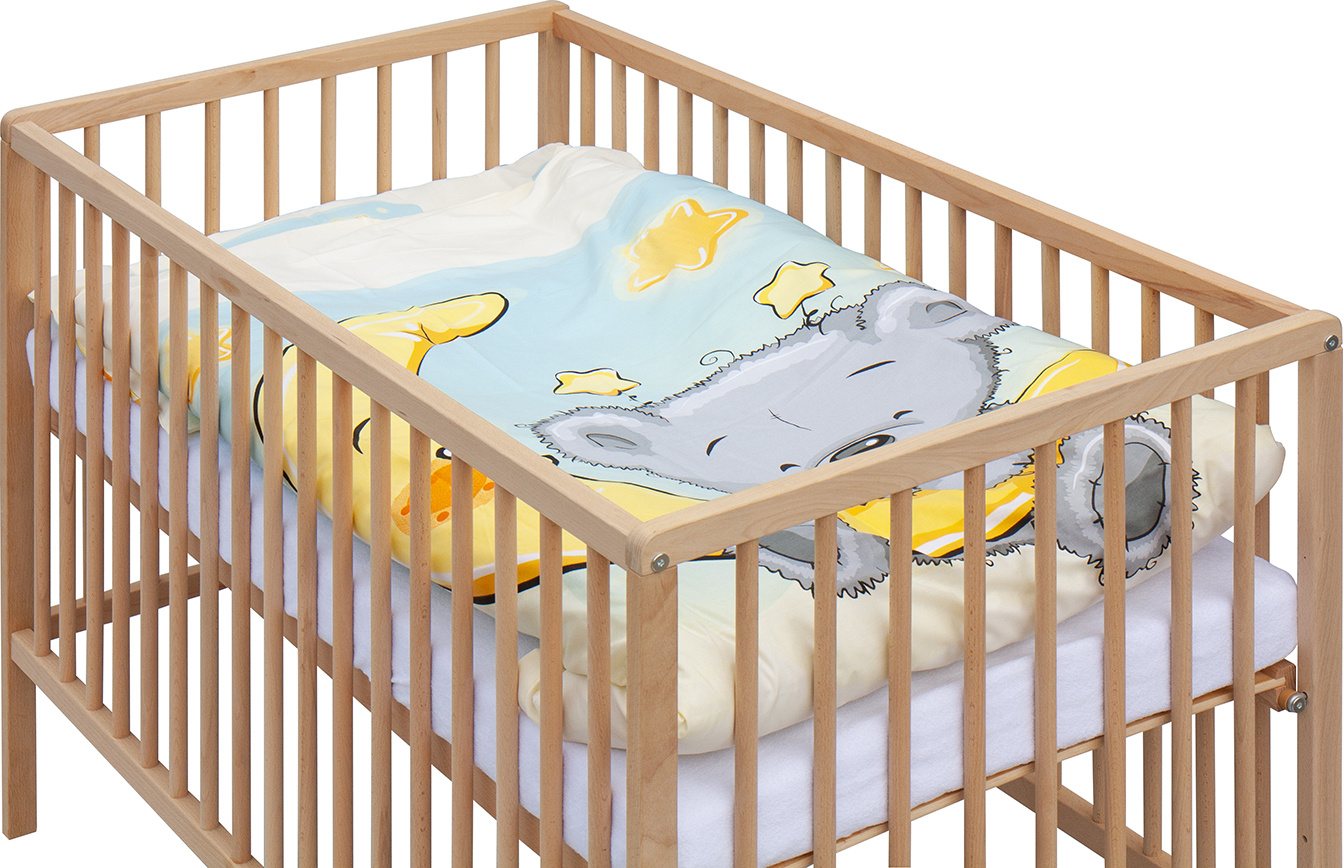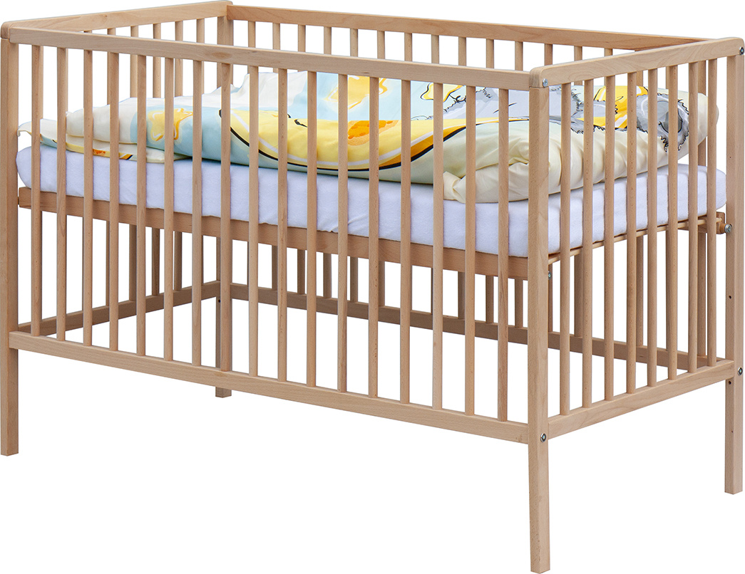 1. Dětská dřevěná postýlka 120 x 60 cm - přírodní, masiv borovice, 3 vyndavací příčky, 3 polohy roštu,