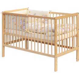 1. Dětská dřevěná postýlka 120 x 60 cm - přírodní, masiv borovice, 3 vyndavací příčky, 6 polohy roštu, nohy postýlky jsou předvrtány pro případné nasazení koleček