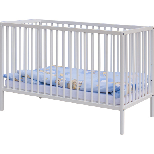 1. Dětská dřevěná postýlka 120 x 60 cm - bílá, masiv buk, 3 vyndavací příčky, 2 polohy roštu