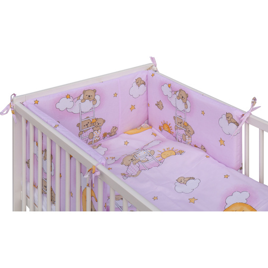 Scarlett Dětská postýlka s kompletní výbavou Scarlett 120 x 60 cm - Mráček - růžová