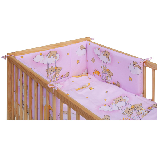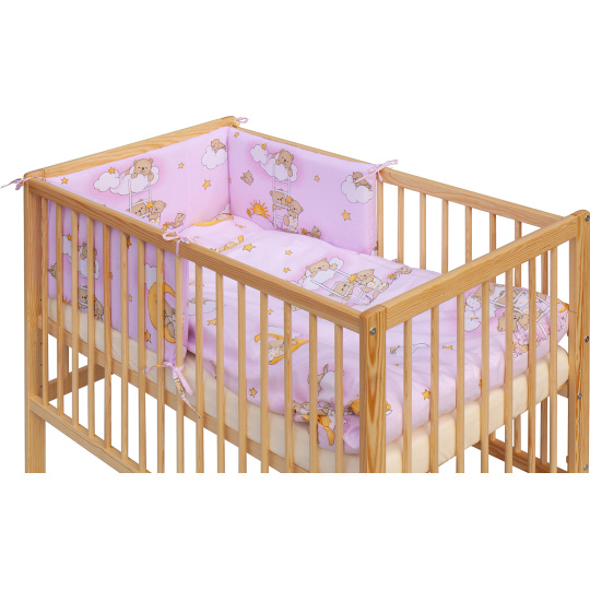 Scarlett Dětská postýlka s kompletní výbavou Scarlett 120 x 60 cm - Mráček - růžová
