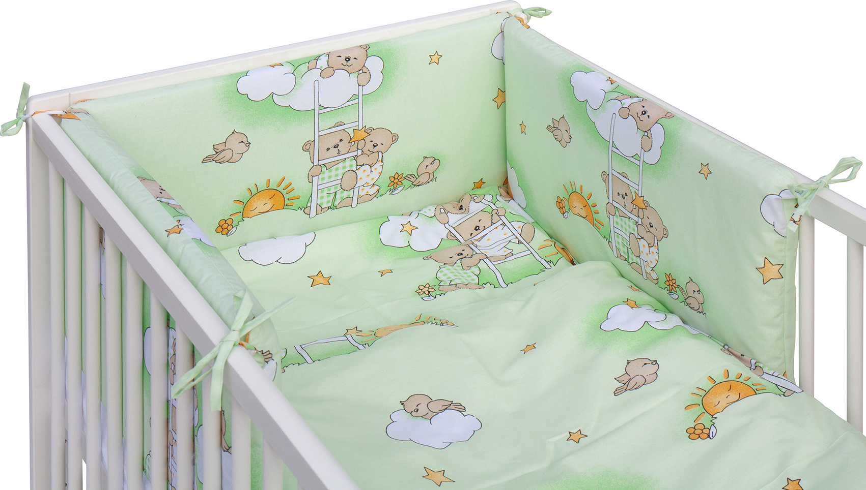 Scarlett Dětská postýlka s kompletní výbavou Scarlett 120 x 60 cm - Mráček - zelená