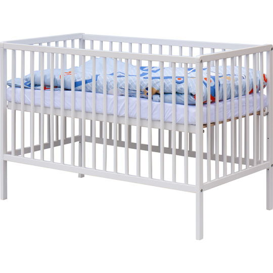 1. Dětská dřevěná postýlka 120x60 cm - bílá, masiv buk, 3 vyndavací příčky, 3 polohy roštu