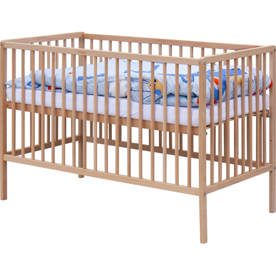 1. Dětská dřevěná postýlka 120 x 60 cm - přírodní, masiv borovice, 3 vyndavací příčky, 3 polohy roštu,