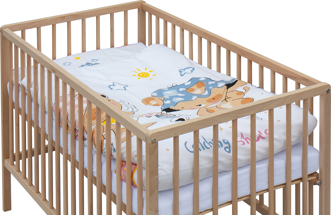 1. Dětská dřevěná postýlka 120 x 60 cm - přírodní, masiv borovice, 3 vyndavací příčky, 3 polohy roštu,