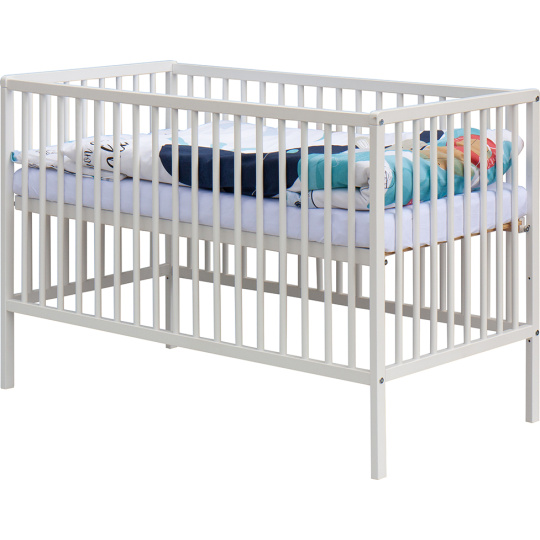 1. Dětská dřevěná postýlka 120x60 cm - bílá, masiv buk, 3 vyndavací příčky, 3 polohy roštu