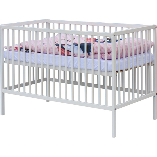 1. Dětská dřevěná postýlka 120x60 cm - bílá, masiv buk, 3 vyndavací příčky, 3 polohy roštu