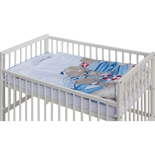 1. Dětská dřevěná postýlka 120 x 60 cm - bílá, masiv borovice, stahovací bok, 6 poloh roštu