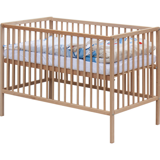 1. Dětská dřevěná postýlka 120 x 60 cm - přírodní, masiv borovice, 3 vyndavací příčky, 3 polohy roštu,