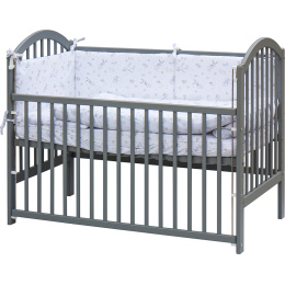 1. Dětská dřevěná postýlka 120 x 60 cm - šedá, masiv borovice, stahovací bok, 6 poloh roštu, nohy postýlky jsou předvrtané pro případné nasazení koleček