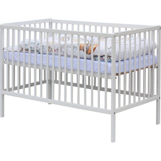 1. Dětská dřevěná postýlka 120x60 cm - bílá, masiv buk, 3 vyndavací příčky, 3 polohy roštu