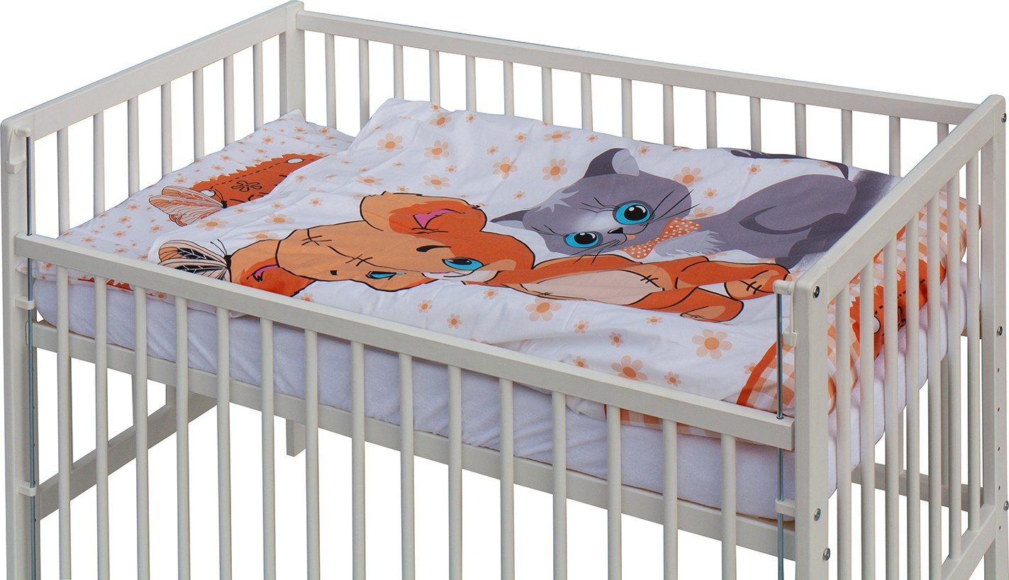 1. Dětská dřevěná postýlka 120 x 60 cm - bílá, masiv borovice, stahovací bok, 6 poloh roštu