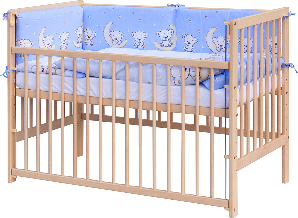 1. Dětská dřevěná postýlka 120 x 60 cm - přírodní, masiv buk, stahovací bok, 6 poloh roštu