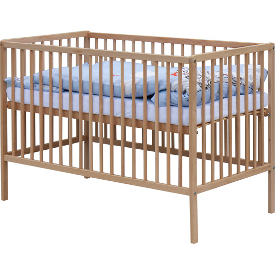 1. Dětská dřevěná postýlka 120 x 60 cm - přírodní, masiv borovice, 3 vyndavací příčky, 3 polohy roštu,