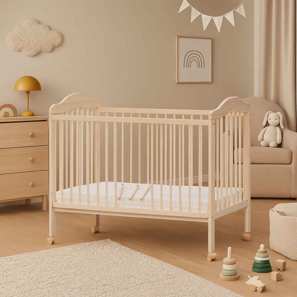 Kolečka ani matrace nejsou součástí postýlky, ale je možné si je objednat z naší nabídky.