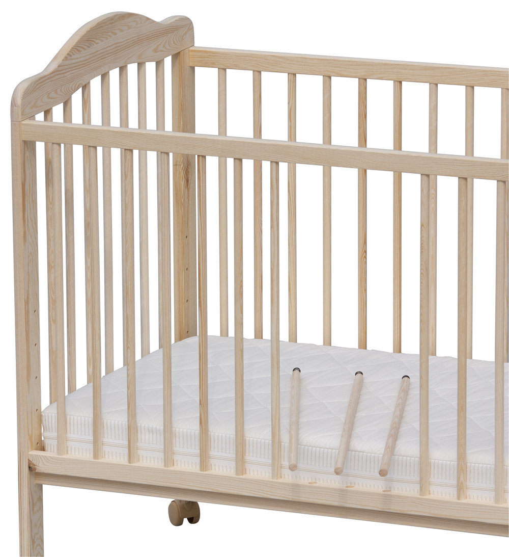 Dětská postýlka Alek|_ECO je vyráběna z kvalitního borovicového dřeva bez povrchové úpravy. Postýlka je vyráběna dle platných norem ČSN EN 716-1+AC (910606) na výrobky pro děti do 3 let.