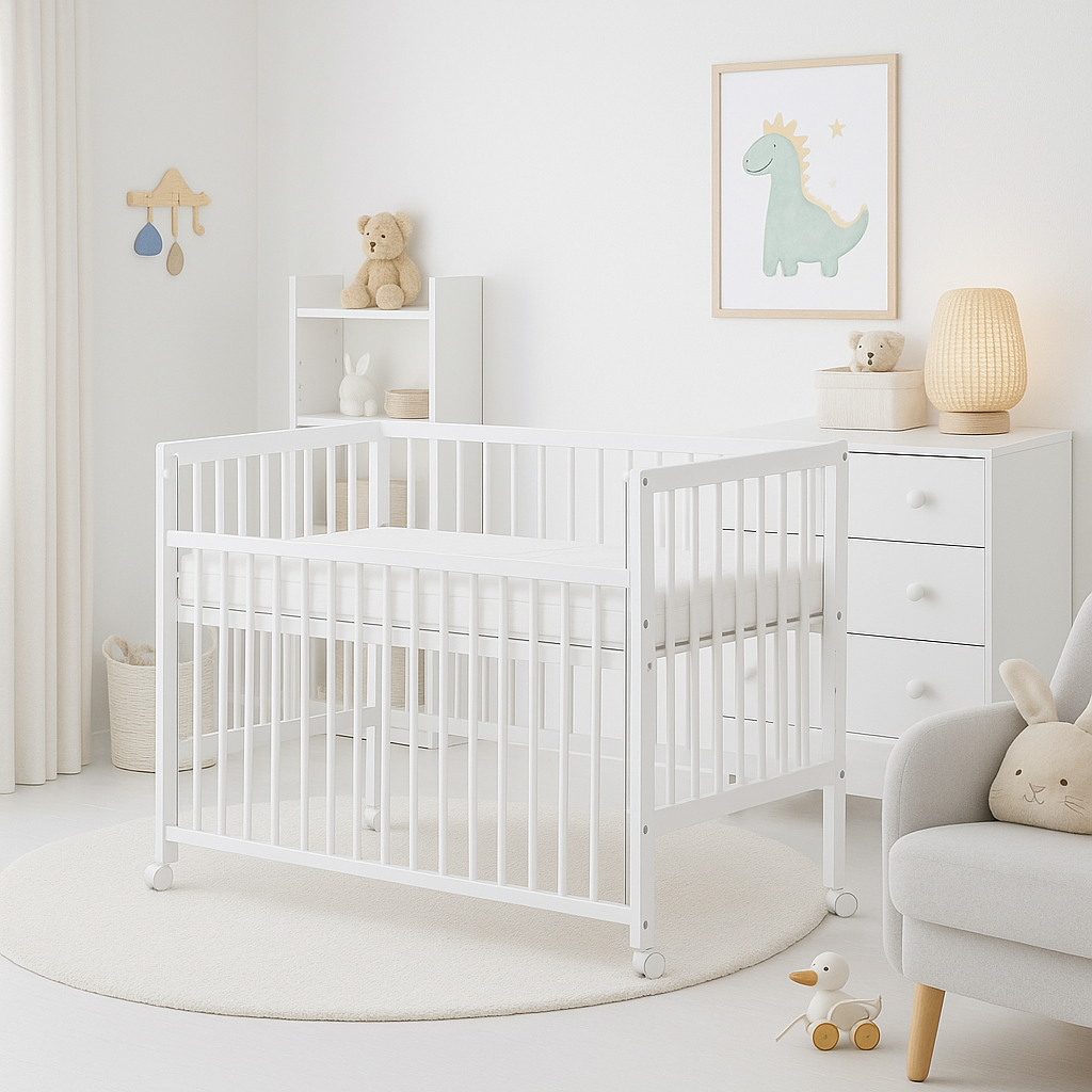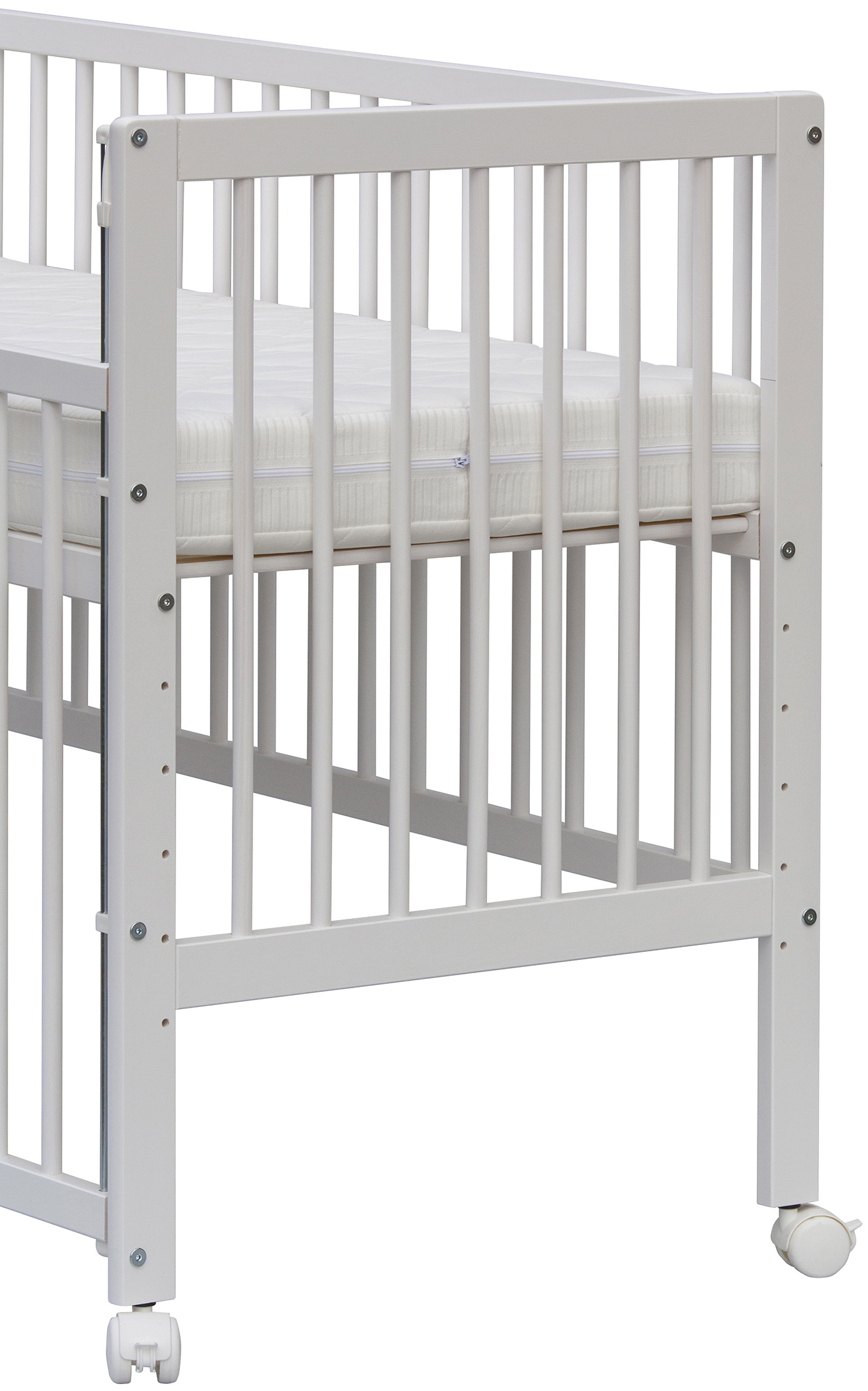 Kolečka ani matrace nejsou součástí postýlky, ale je možné si je objednat z naší nabídky.