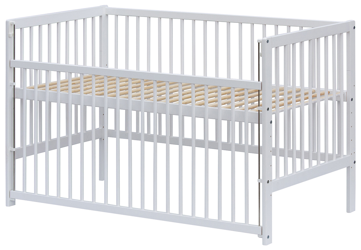 Postýlka je připravena pro montáž válendové bočnice Scarlett Dominik bílý z naší nabídky. Montáž je možná na jednu, nebo obě strany postýlky. Postýlka nemá předvrtané nohy pro montáž koleček.