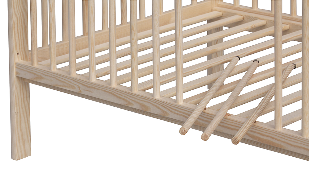 Postýlka Dominik obsahuje vyndavací příčky a rošt nastavitelný do 6 poloh.