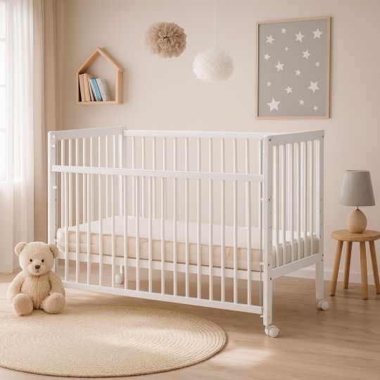 Kolečka ani matrace nejsou součástí postýlky, ale je možné si je objednat z naší nabídky.