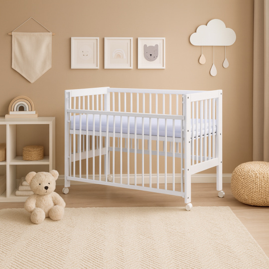 Kolečka ani matrace nejsou součástí postýlky, ale je možné si je objednat, dle vašich potřeb, z naší nabídky.