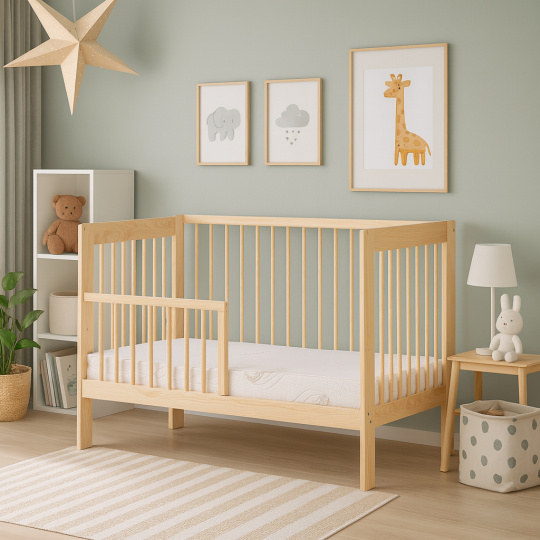 Scarlett Dětská postýlka Scarlett Kamila - ECO přírodní (borovice) - stahovací + válendová bočnice - 120 x 60 cm