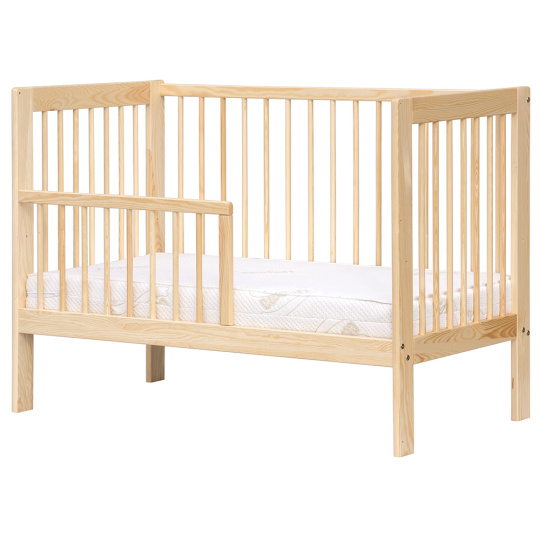 Dětská postýlka Scarlett Kamila ECO – přírodní je kvalitní a bezpečná dřevěná postýlka vyrobená z masivního borovicového dřeva bez jakékoli povrchové úpravy, což ocení zejména rodiče preferující přírodní a zdravotně nezávadné materiály. Postýlka splňuje přísné bezpečnostní normy ČSN EN 716-1+AC (910606) pro výrobky určené dětem do 3 let, takže si můžete být jisti maximální bezpečností i stabilitou.