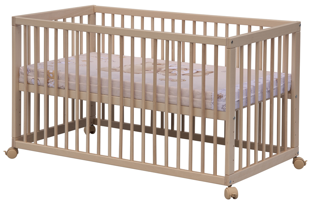 Kolečka, nízká válendová bočnice a ani matrace nejsou součástí postýlky, ale je možné si je objednat, dle vašich potřeb, z naší nabídky.