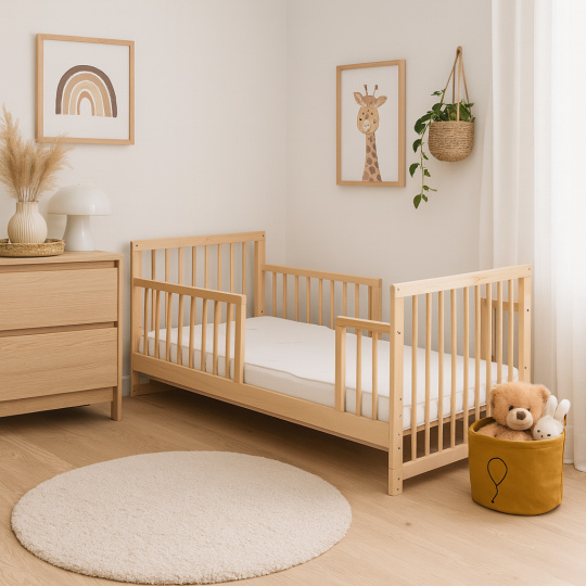 Scarlett Dětská postýlka Scarlett Kombi s vyndavacími příčkami buk - přírodní 140 x 70 cm
