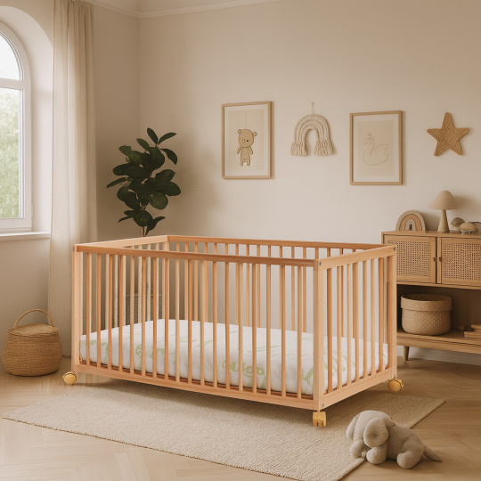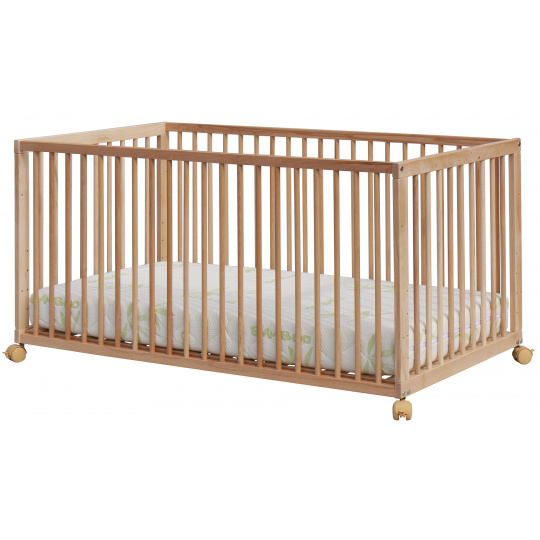 Kolečka, nízká válendová bočnice a ani matrace nejsou součástí postýlky, ale je možné si je objednat, dle vašich potřeb, z naší nabídky.