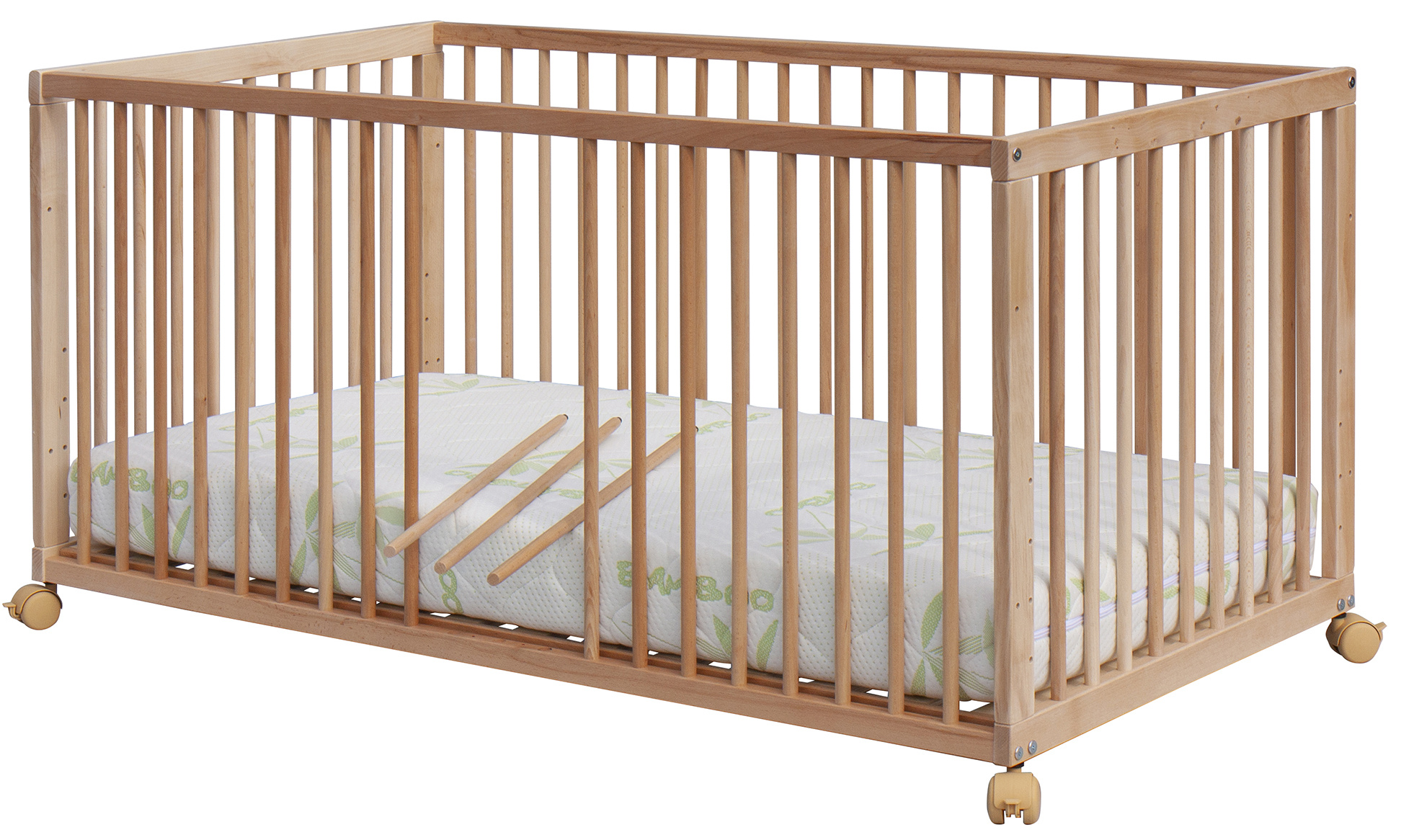 Kolečka, nízká válendová bočnice a ani matrace nejsou součástí postýlky, ale je možné si je objednat, dle vašich potřeb, z naší nabídky.
