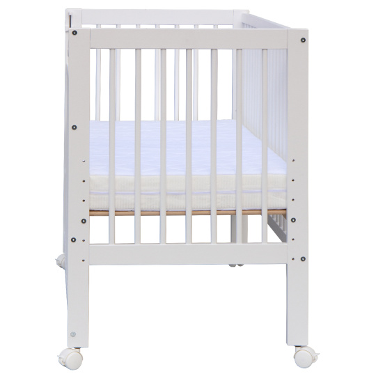 Matrace, válendová bočnice ani kolečka nejsou součástí základního balení, ale můžete je jednoduše dokoupit z naší široké nabídky doplňků, aby postýlka přesně vyhovovala vašim představám.