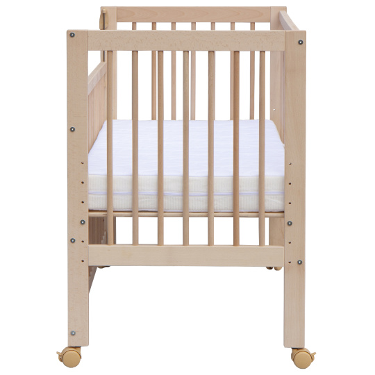 Matrace, válendová bočnice a kolečka nejsou součástí balení, ale snadno je doplníte z naší široké nabídky příslušenství, aby postýlka splňovala vaše představy do posledního detailu.