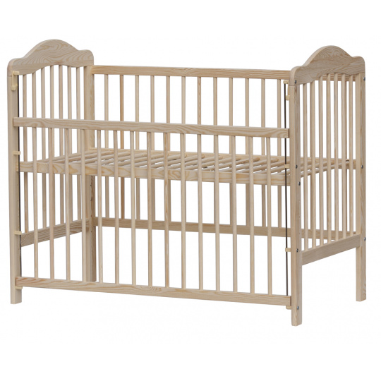 Dětská postýlka Alek ECO je vyráběna z kvalitního borovicového dřeva bez povrchové úpravy. Postýlka je vyráběna dle platných norem ČSN EN 716-1+AC (910606) na výrobky pro děti do 3 let.