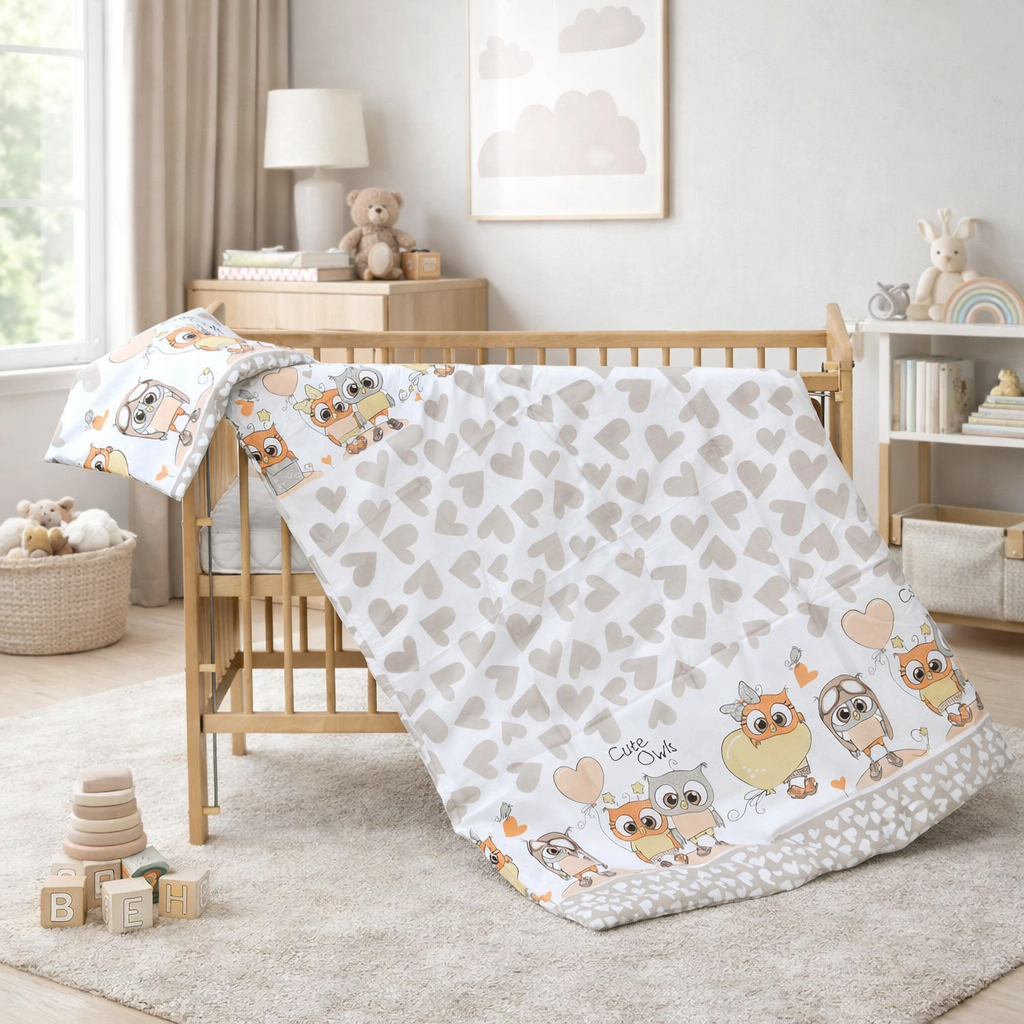 Ve stejném dekoru lze dokoupit mantinel do postýlky a zavinovačku.
