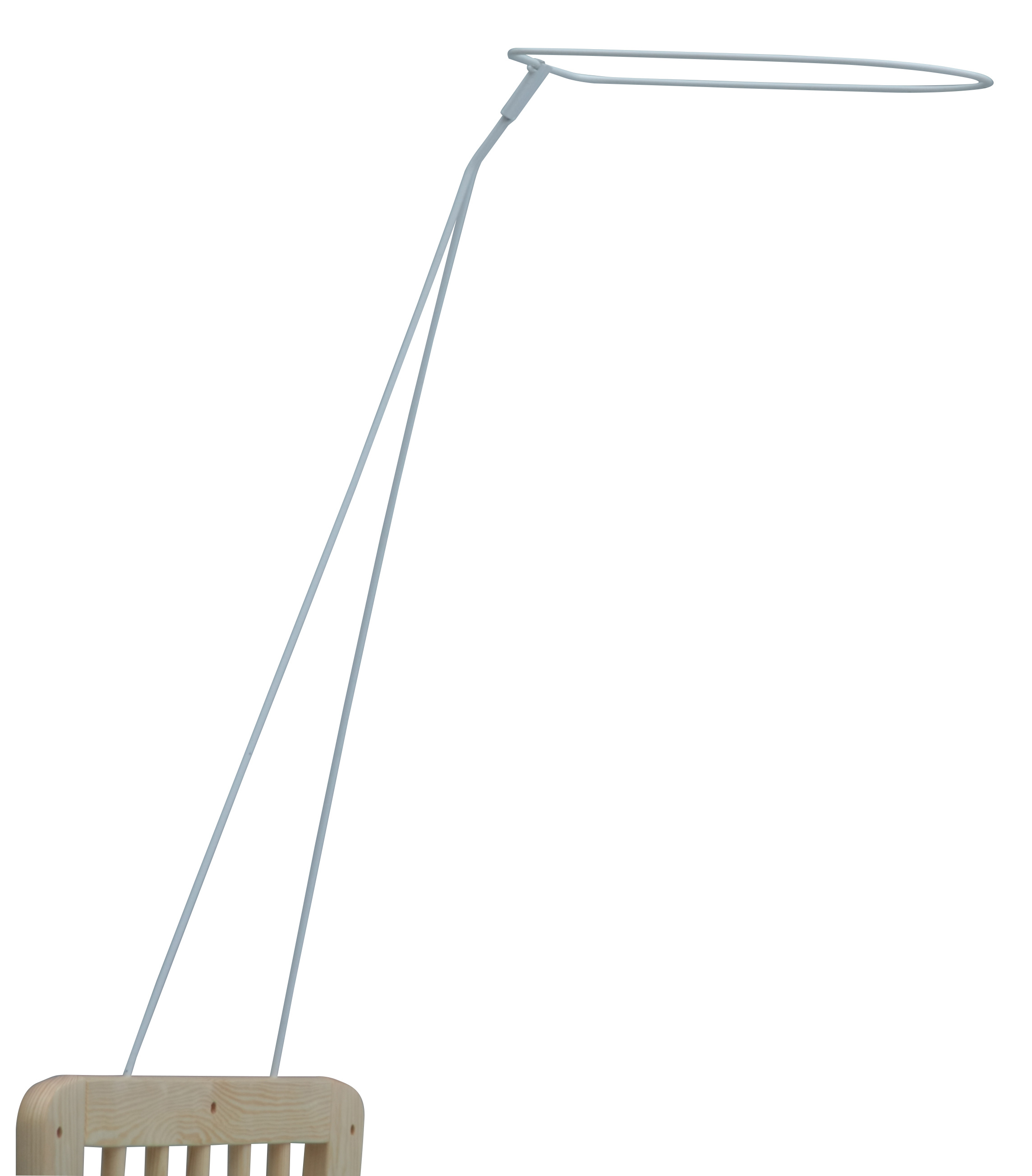 Univerzální držák na nebesa se snadno připevní k většině dřevěných kolébek. Na vrchní část se jednoduše nasunou nebesa a dítě je více chráněno proti vnějším vlivům.