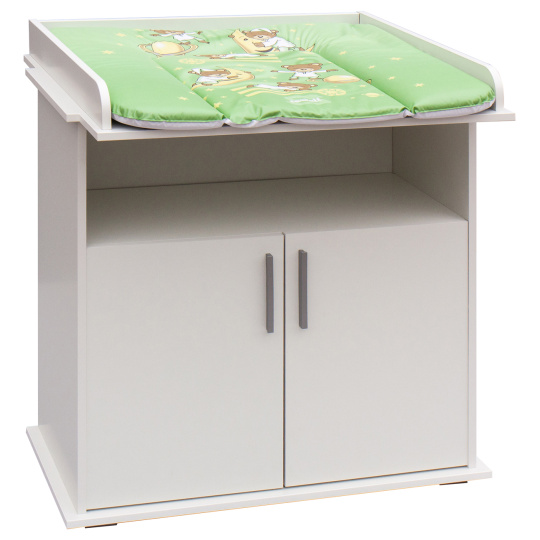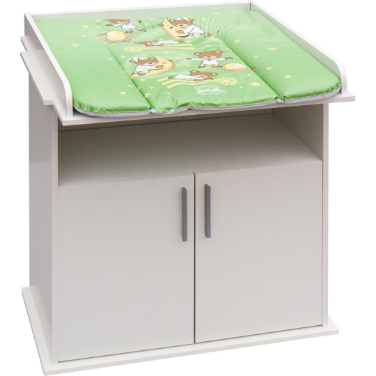 Přebalovací komoda Míša je vyrobena z laminátu v bílé barvě. Komoda má jednu otevřenou přihrádku a skříňku s policí. U komody lze jednoduše sundat desku na přebalování a nadále používat jen jako komodu i ve studentském pokojíčku. Přebalovací podložka z PVC není v ceně.