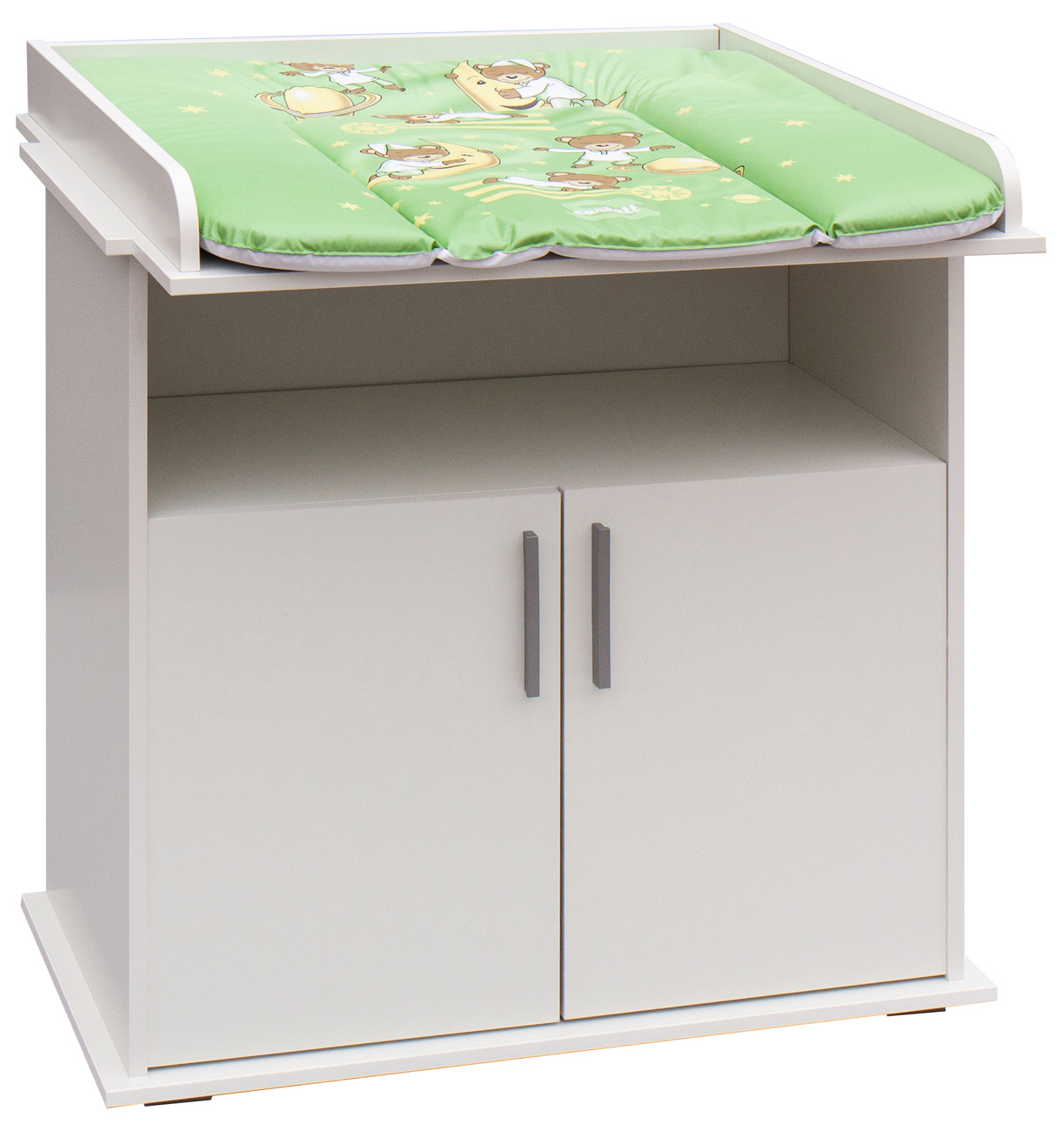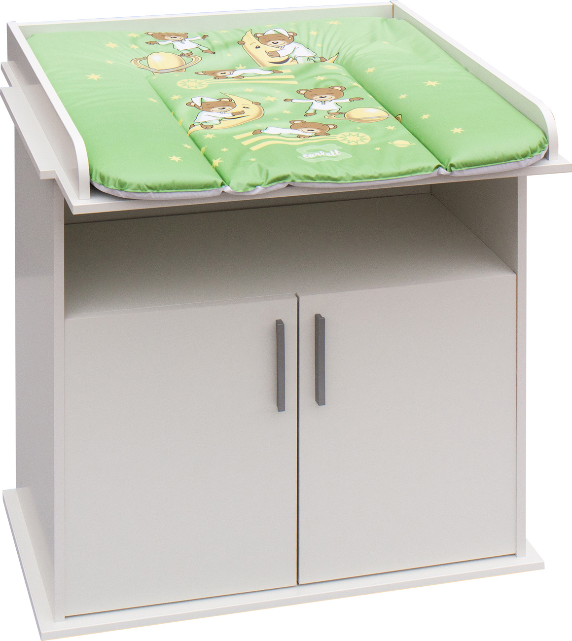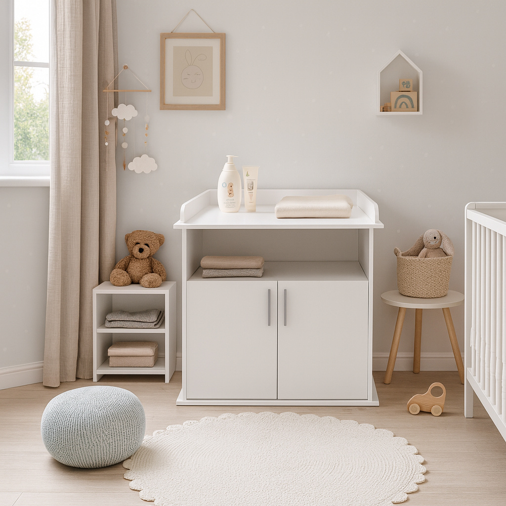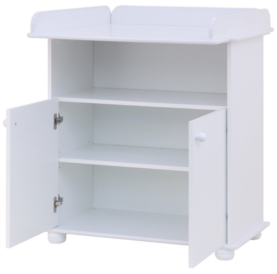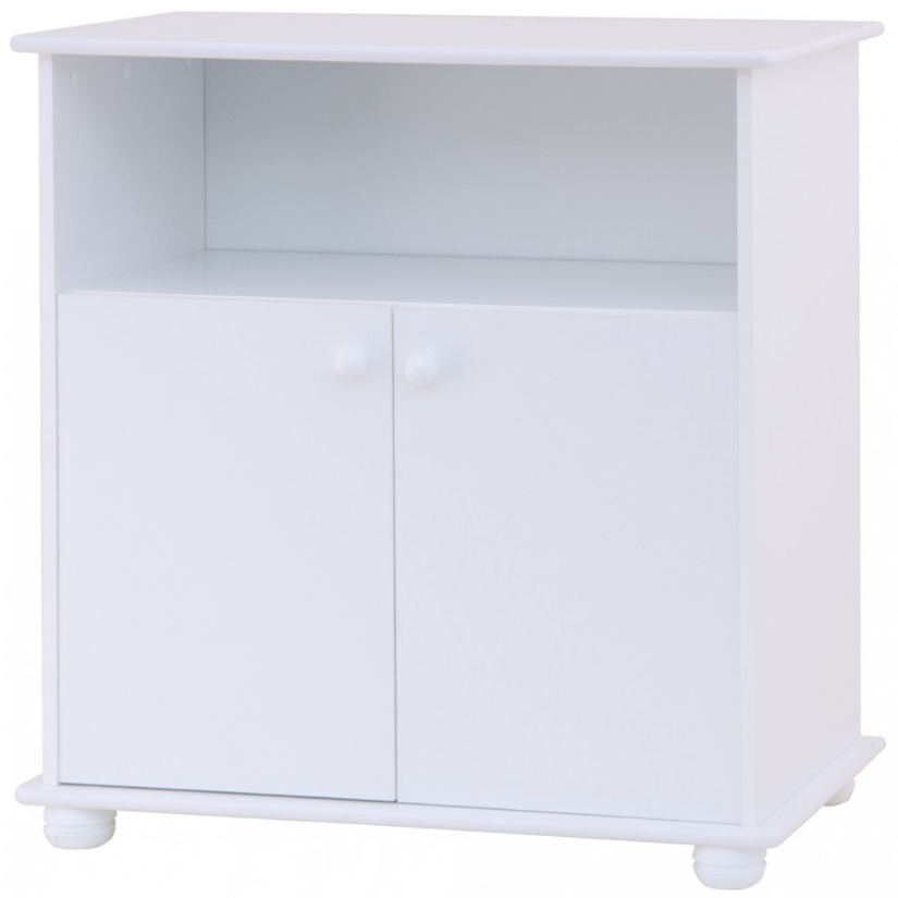 Přebalovací komoda Míša je vyrobena z laminátu v bílé barvě. Komoda má jednu otevřenou přihrádku a skříňku s policí. U komody lze jednoduše sundat desku na přebalování a nadále používat jen jako komodu i ve studentském pokojíčku. Přebalovací podložka z PVC není v ceně.