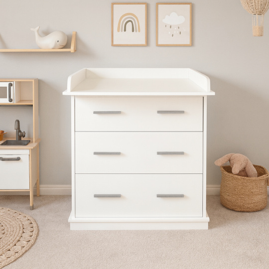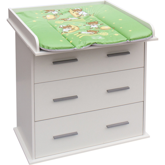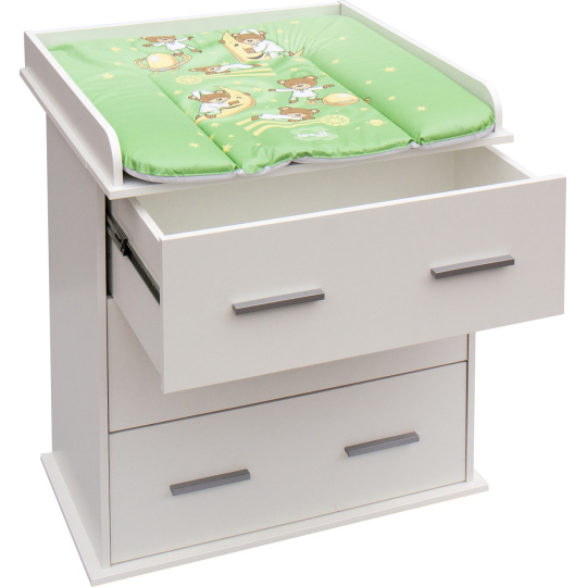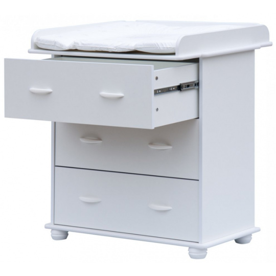 Přebalovací podložka z PVC není v ceně. Váha komody včetně nástavce je 36 kg.