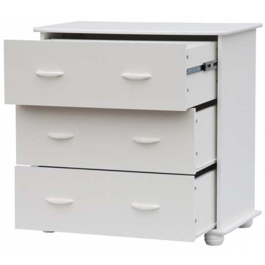 Komoda má tři zásuvky s výsuvem, horní zásuvka s plným kvalitním výsuvem.