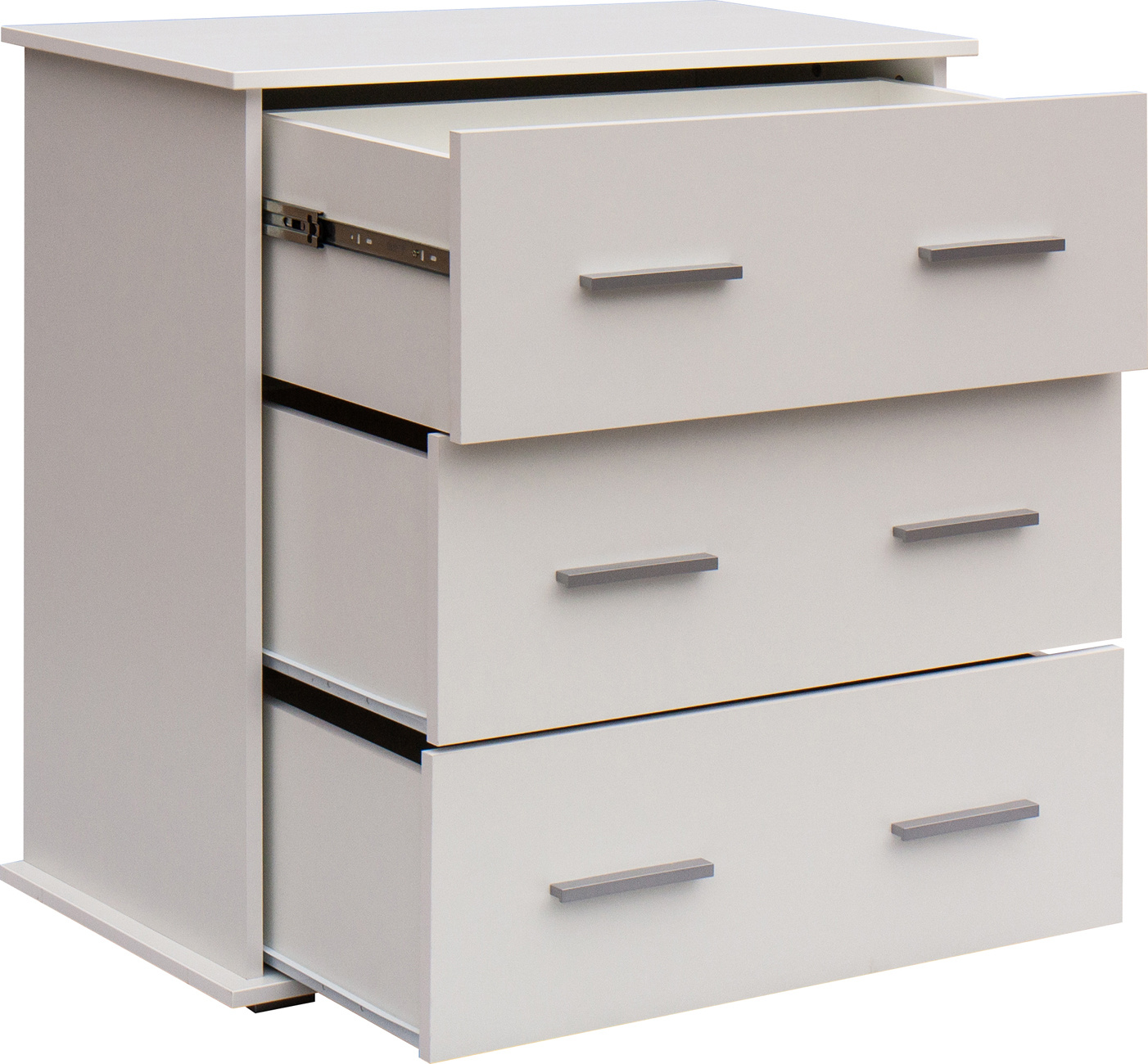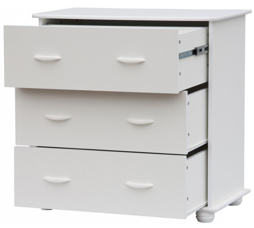 Komoda má tři zásuvky s výsuvem, horní zásuvka s plným kvalitním výsuvem.